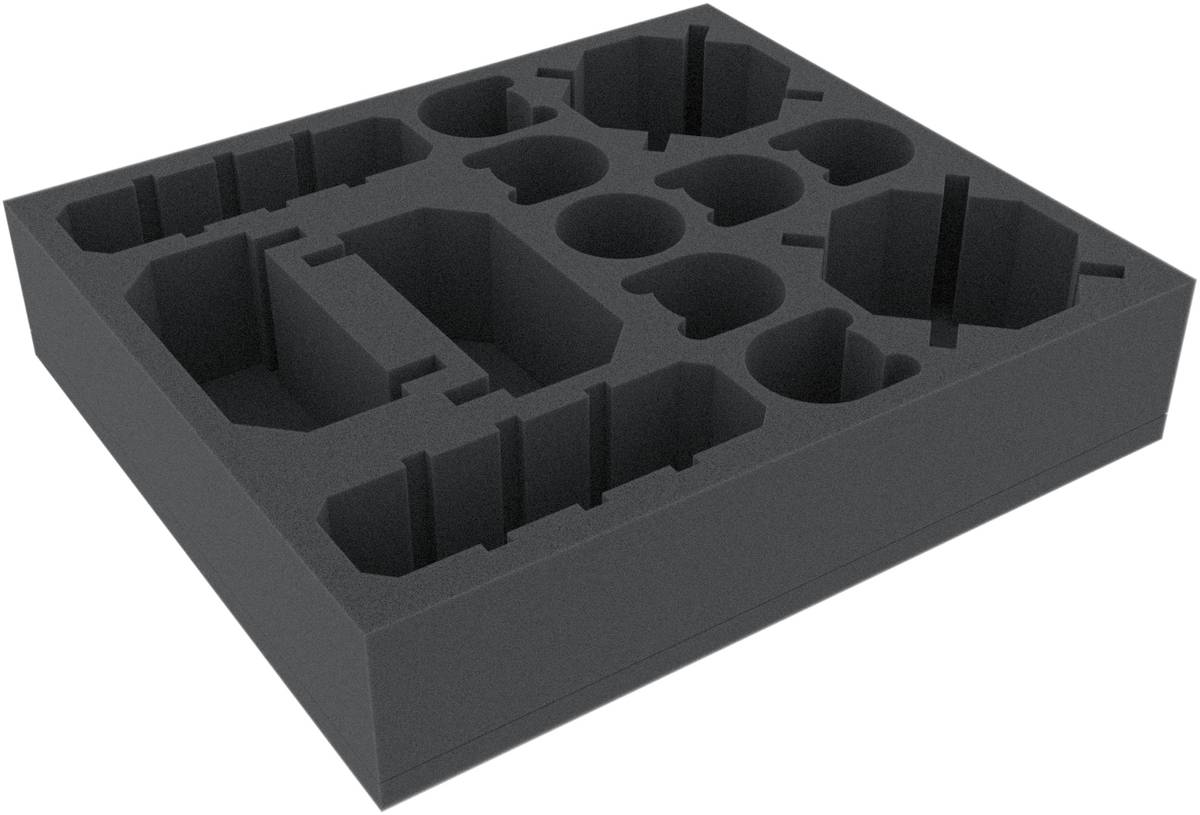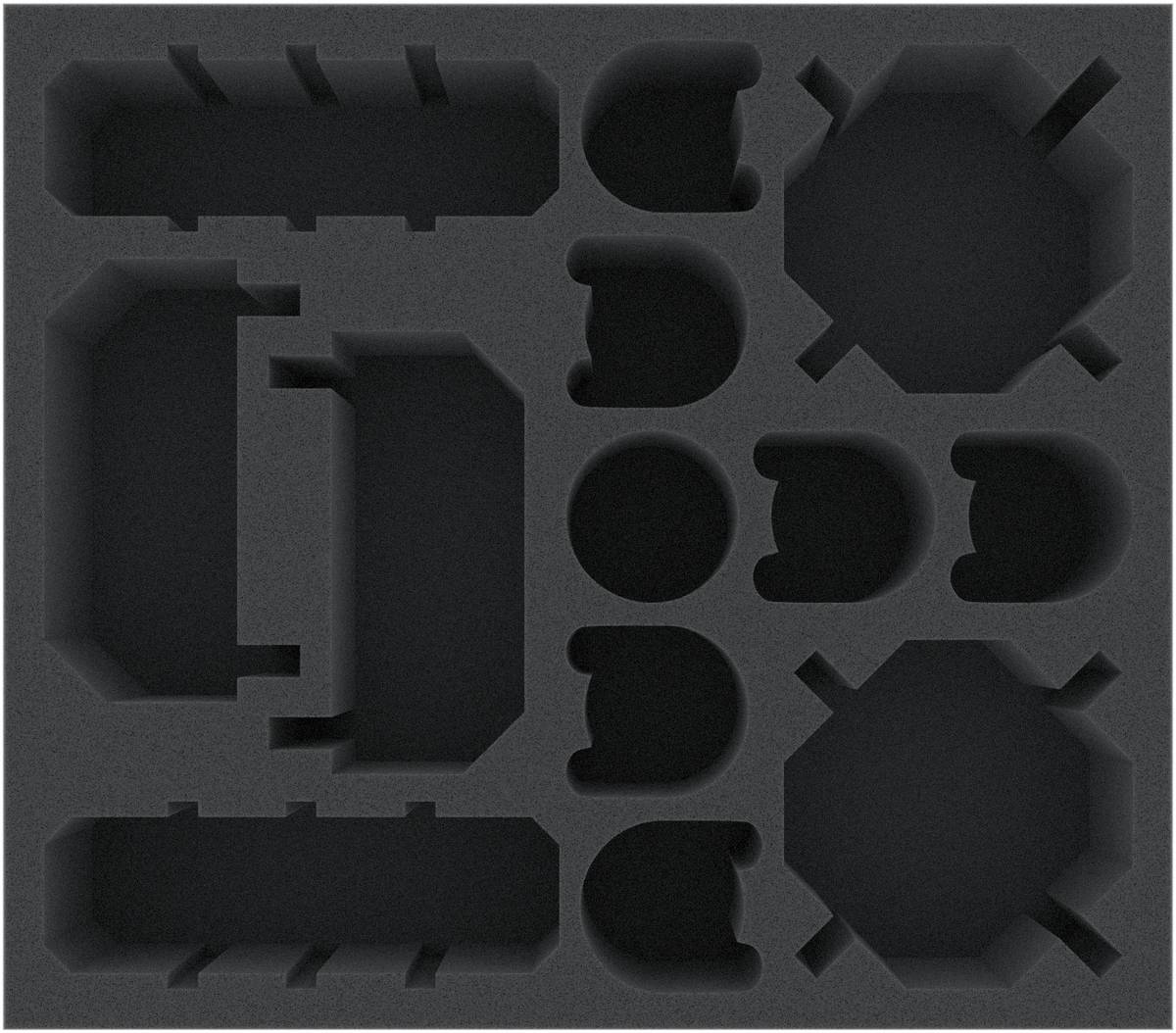 Vassoio in schiuma con 13 scomparti per riporre in modo chiaro e sicuro 6 Questoris Knights e le parti dell'edificio. Adatto per l'originale Adeptus Titanicus: Grandmaster Edition scatola di gioco da tavolo.